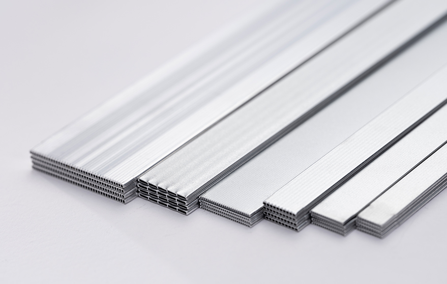 微通道铝扁管(又称“平行流铝扁管”)是一种采用精炼铝棒、通过热挤压、经表面喷锌防腐处理,薄壁多孔扁形管状材料,主要应用于各种冷剂的空调系统中,作为承载新型环保制冷剂的管道零部件,采用新型环保制是新一代平行流微通道空调换热器的关键材料。